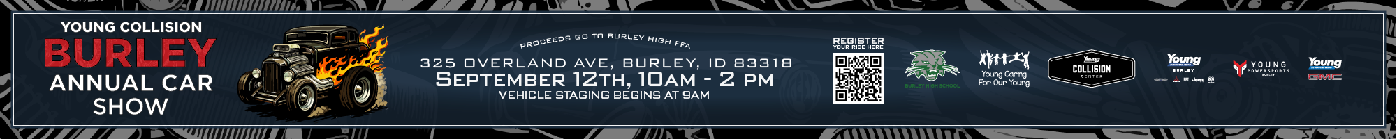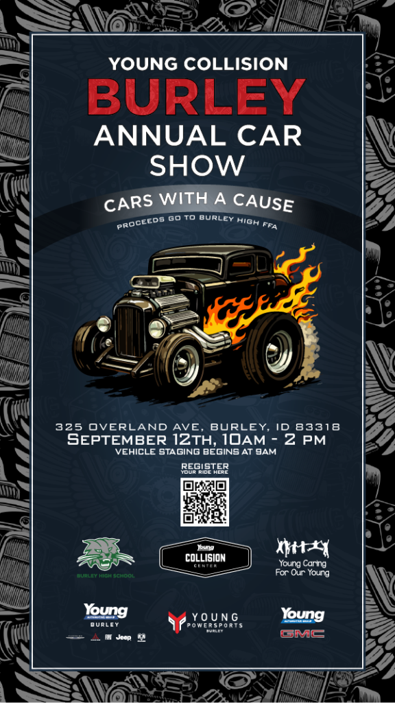 Join us at the Young Collision Center Annual Car Show in Burley, ID on Saturday, September 12th for a full day of cars, community, and family fun! Vehicle staging begins at 9:00 AM, followed by the Car Show and Judging from 10:00 AM to 2:00 PM, with prizes awarded at 2:00 PM. You don’t want to miss out—there will be plenty of raffles and prizes for everyone! Whether you’re showcasing your ride or just coming to enjoy the event, it’s a day you won’t want to miss—register your vehicle below to secure your spot!